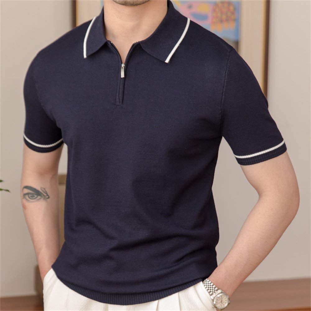 Men Short Sleeve Polo Shirts Casual Lapel Splicing T-shirts P0172